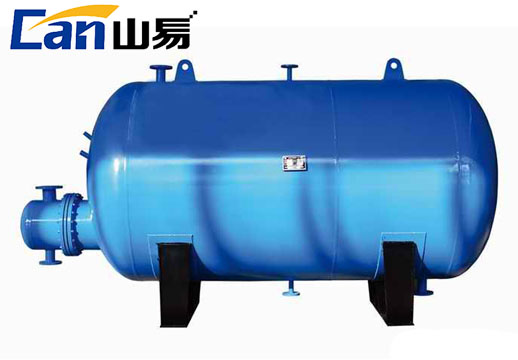 導流型半容積式換熱器是新型節(jié)能的換熱設(shè)備,與傳統(tǒng)固定盤管相比較,浮動盤管能上下輕微浮動,產(chǎn)生高頻振動,形成良好紊流傳熱狀態(tài),并且它能借助通過高溫熱媒的薄壁銅管管壁與管外壁結(jié)垢層膨脹量的差異,在一定條件下,使水垢自動脫落。通用換熱器一般需要配置水水熱交換器來降低蒸汽凝結(jié)水溫度以便回用,而此類節(jié)能型熱交換器凝結(jié)水出水溫度在45攝適度左右,可直接回鍋爐房重復使用。這樣減少了設(shè)備投資,節(jié)約熱交換器機房面積,從而降低建造價。